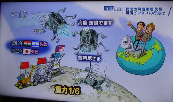 @sakimotohitotsu<tv>(時論公論)「民間月面着陸再挑戦失敗 月面ビジネスの行方は」★★★月面着陸は難易度が高い。アイスペースは2023年の失敗に続き、今回は月面に衝突したとみられ、着陸は失敗。2年後再挑戦。宇宙条約では月の資源について規定なく、月の水の米中の派遣争いも踏まえ早い者勝ちになる月面ビジネス。