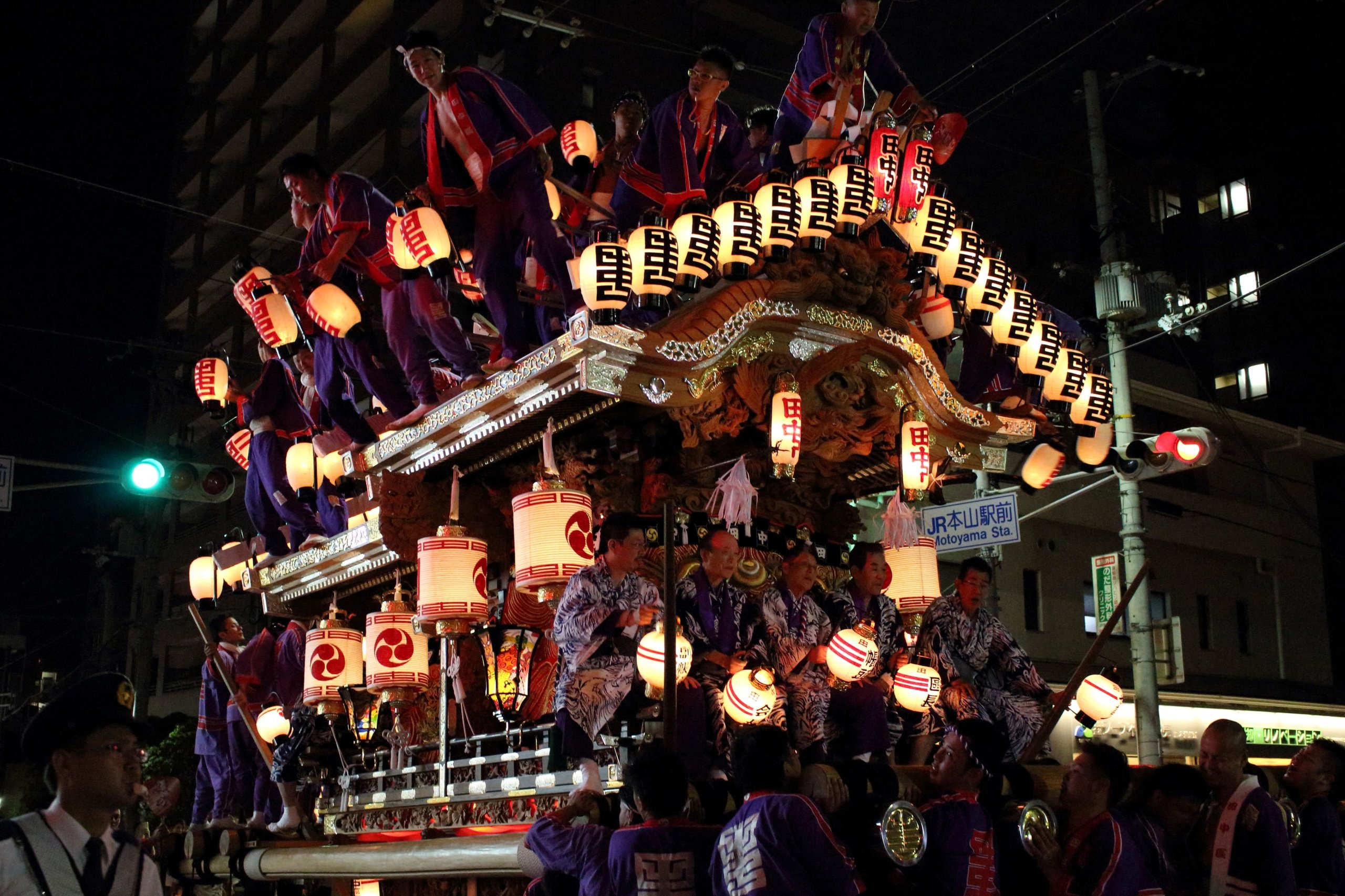 @chibipencilだんじりが……いる! (有明の日は隣の地区の試験曳き) (先週がうちの地区の試験曳き) (今日はここいらの本番) (駅の階段がいくつか封鎖されている)