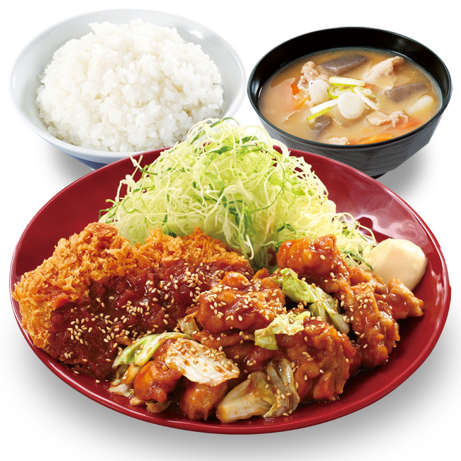 @younoyunoyu#SAOジョイフルコラボ ご当地メニューのチキン南蛮定食と、ニラ豚定食。2人でシェアして食べた。どっちかひとつとか選べません。 pic.x.com/aDHvwOChoZ x.com/joyfull_info/s…